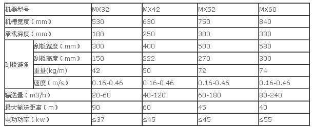 MX型埋刮板輸送機工程上亦稱高效型埋刮板輸送機可用于化工、水泥、輕工、糧食、食品等部門水平式傾斜輸送粉料和小顆粒物料。 MX系列大運量埋刮板輸送機是針對不同的運輸條件而設(shè)計的,它效率高,功耗省,燥音低,傾斜布置時最大傾角可達30度.本系列刮板輸送機共有4種機型,最大輸送量可達240m3/h,最大輸送距離可達80m。MX系列刮板輸送機應(yīng)用范圍