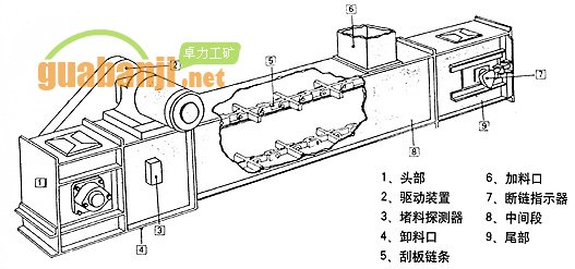 埋刮板輸送機在封閉的矩形斷面的殼體內,借助于運動著的刮板鏈條連續輸送散狀物科的運輸設備。